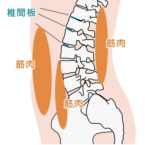 椎骨と椎骨の間には「椎間板」と呼ばれるクッションがあります。